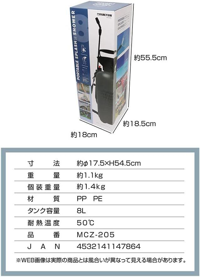 商品名:ポンプ式ポータブルスプラッシュシャワー8L