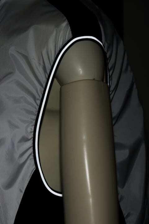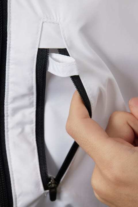 脇部分を黒配色にすることによりファンが目立ちにくくなり、配達時以外でも抵抗なくご着用いただけます。